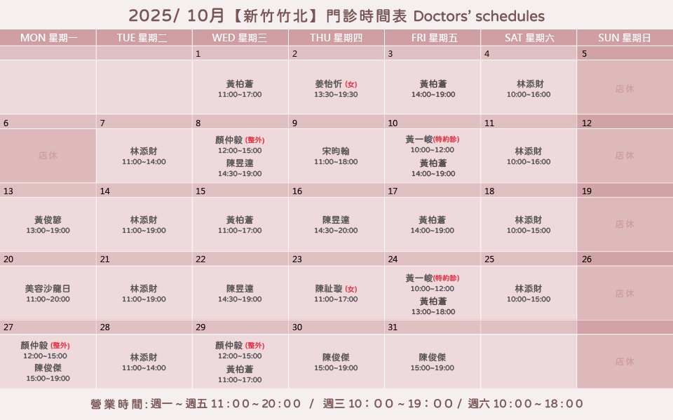 週一 ~ 週五 11:00 am ~ 20:00 pm