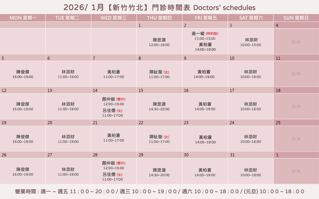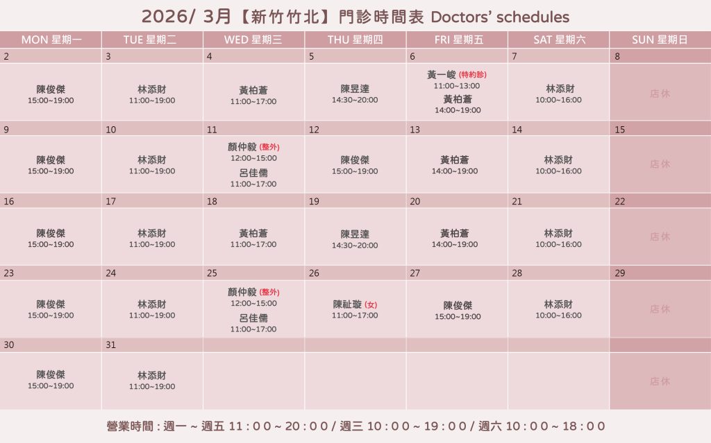週三 10:00 am ~ 19:00 pm